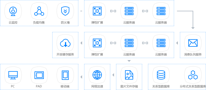 我们的电商解决方案采用分布式架构设计,通过多层级的服务节点部署,实现全渠道的商业运营。系统包含: